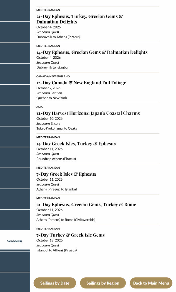 October 11, 2026 Seabourn Quest Athens( Piraeus) to Istanbul