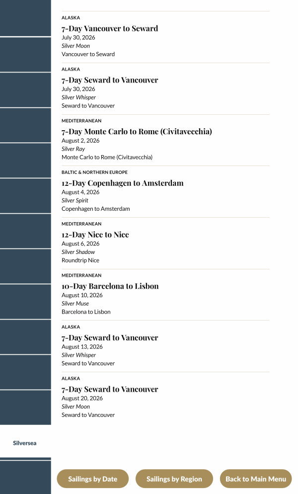 August 13, 2026 Silver Whisper Seward to Vancouver