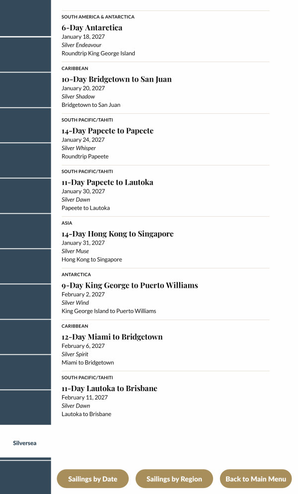January 20, 2027 Silver Shadow Bridgetown to San Juan