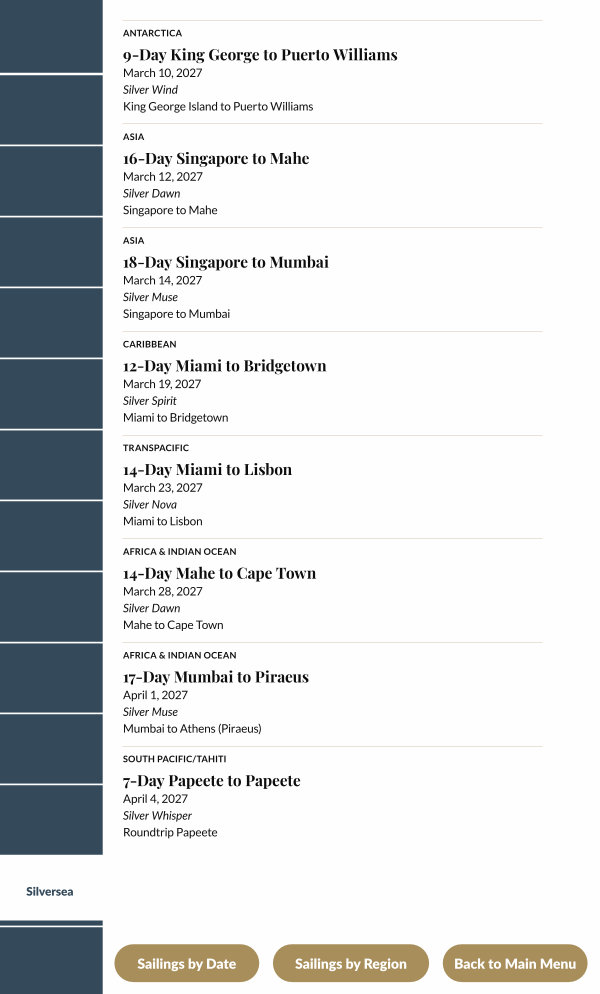 March 12, 2027 Silver Dawn Singapore to Mahe