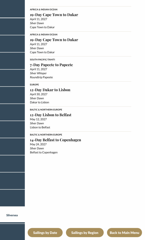 April 11, 2027 Silver Dawn Cape Town to Dakar