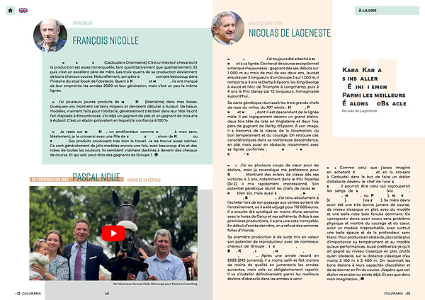 G. Quel serait votre croisement idéal pour faire un étalon? F. N. Je reste sur Moises Has, un améliorateur comme Cokoriko à mon sens. Idéalement, je le croiserai avec une fille de Saint des Saints, sinon de Kapgarde ou Cokoriko. Ses produits encaissent très bien le travail. Je les trouve assez calmes. Ce sont généralement de jolis modèles encore une fois, avec beaucoup d’ os et des robes de toutes les couleurs. Ils semblent vraiment destinés à devenir des chevaux de course. Et qui sait, peut-être des gagnants de Groupe 1.