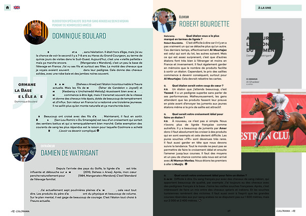 G. Quel étalon serait votre coup de cœur? R. B. Un étalon que j’ attends beaucoup, c’ est Yazeed. Il a un pedigree superbe sans parler de ses performances. Malheureusement, les gens attendent que les produits fassent leur preuve en piste avant d’ envoyer les juments aux jeunes étalons même si le prix de saillie est attractif.