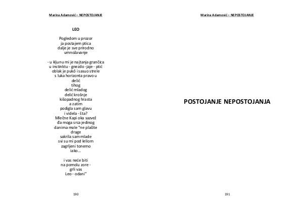 Marina Adamović – NEPOSTOJANJE POSTOJANJE NEPOSTOJANJA 191