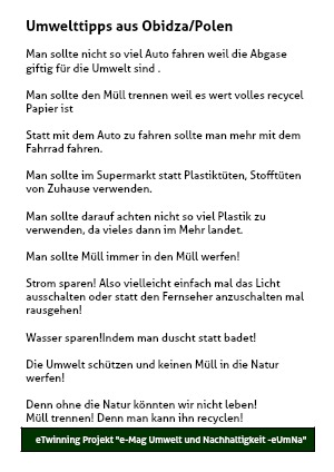 Umwelttipps aus Obidza/Polen