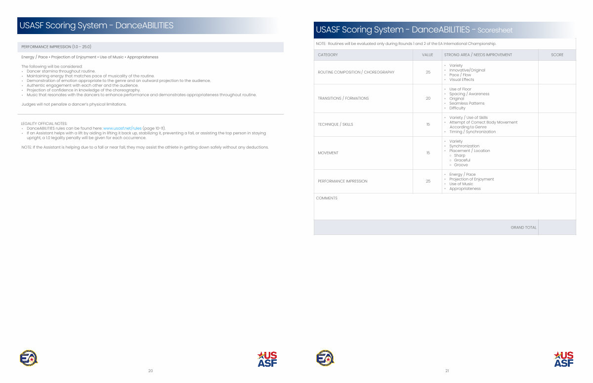 USASF Scoring System- DanceABILITIES