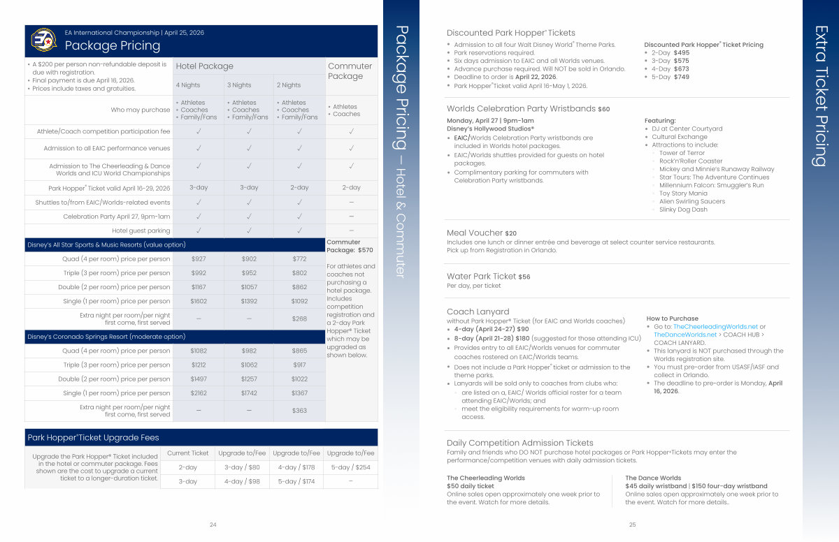 • EAIC / Worlds Celebration Party wristbands are included in Worlds hotel packages.