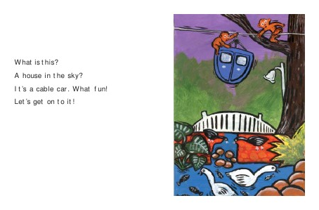 What is this? A house in the sky? It’ s a cable car. What fun! Let’ s get on to it!
