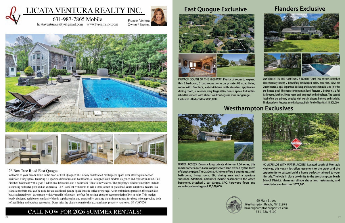 Frances Ventura licataventurarealty @ gmail. com www. lvrealtyinc. com Owner / Broker.