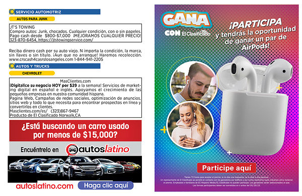 MasClientes . com ¡ Digitalice su negocio HOY por $ 29 a la semana ! Servicios de marketing digital en español e inglés . Apoyamos el crecimiento de las pequeñas empresas en nuestra comunidad hispana . Pagina Web , Campañas de redes sociales , optimización de anuncios , sitios web y todo lo que necesita para encontrar prospectos en línea y convertirlos en clientes . Masclientes . com / es / ( 323 ) 867-9467 Producto de El Clasificado Norwalk , CA