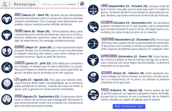 Horóscopo ARIES ( Marzo 21 - Abril 19 ). Tendrás ciertas dificultades durante esta semana , pero si actúas con calma no tendrás mayores problemas . Con tu pareja , evita discusiones que puedan causar resentimientos difíciles de borrar .