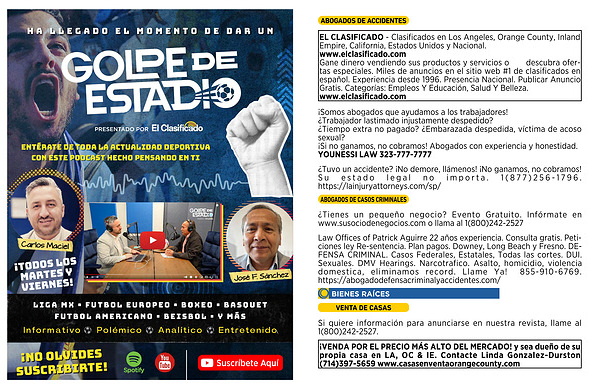 EL CLASIFICADO - Clasificados en Los Angeles , Orange County , Inland Empire , California , Estados Unidos y Nacional . www . elclasificado . com Gane dinero vendiendo sus productos y servicios o descubra ofertas especiales . Miles de anuncios en el sitio web # 1 de clasificados en español . Experiencia desde 1996 . Presencia Nacional . Publicar Anuncio Gratis . Categorías : Empleos Y Educación , Salud Y Belleza . www . elclasificado . com