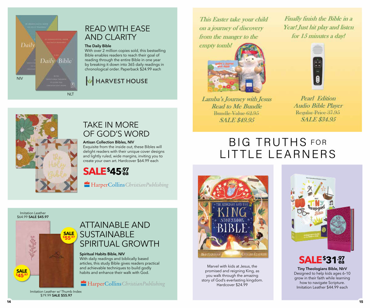 The Daily Bible With over 2 million copies sold, this bestselling Bible enables readers to reach their goal of reading through the entire Bible in one year by breaking it down into 365 daily readings in chronological order. Paperback $ 24.99 each