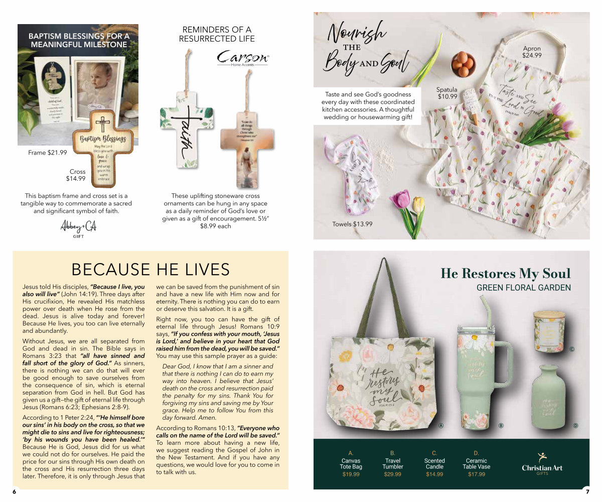 Jesus told His disciples,“ Because I live, you also will live”( John 14:19). Three days after His crucifixion, He revealed His matchless power over death when He rose from the dead. Jesus is alive today and forever! Because He lives, you too can live eternally and abundantly.