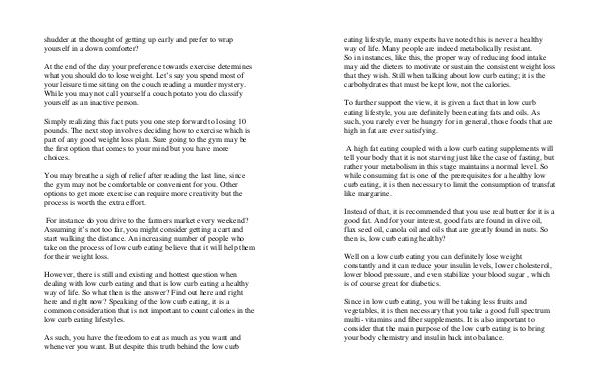 that they wish. Still when talking about low curb eating; it is the