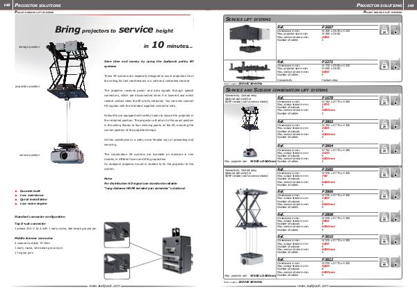 Pulley lifts are equipped with safety hooks to secure the projector in