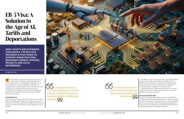 AMID LAYOFFS AND ECONOMIC CHALLENGES, THE EB-5 VISA PROGRAM IS POSITIONED TO SUPPORT INFRASTRUCTURE, RENEWABLE ENERGY, HOUSING PROJECTS, AND LOCAL ENTERPRISES.