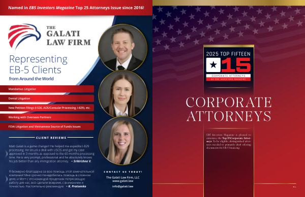 EB5 Investors Magazine is pleased to announce the Top 15 Corporate Attorneys. To be eligible, distinguished attorneys needed to primarily draft offering documents for EB-5 financing.