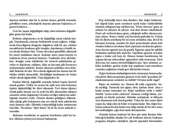 Kişiye ait nedenler var. Hemen ilk yafta yapıştırılır. İrade zayıflığı. Tutamadı işte ağzını, elini, iştahını denir. Ama o kadar zaman tutmuştur ya!. Kişiyi zayıflatan nedir o halde? Sürekli“ acemi araba sürücüsü” olmanın verdiği bıkma, yorgunluk en büyük suçludur. Mutlaka ustalaşmak ve bilinçsiz usta durumuna terfi etmek gerekir. Yoksa bir süre sonra diyeti yapan da, takip eden de bıkar ve kopma başlar. Ben doğru beslenme çabasında olan kadar onu takip edenin de bir süre sonra hevessizleştiğine çoğu kere tanık olmuşumdur.