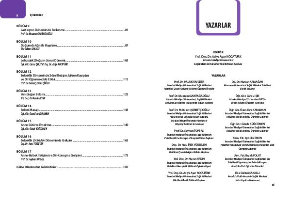 EDİTÖR Yrd. Doç. Dr. Asiye Ayar KOCATÜRK İstanbul Medipol Üniversitesi Sağlık Bilimleri Fakültesi Ebelik Bölüm Başkanı