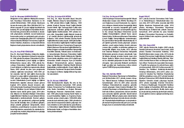 Öğr. Gör. Aybüke ERSİN Başkent Üniversitesi, Fizyoterapi ve Rehabilitasyon Bölümü’ nden 2011 yılında mezun olmuştur. Yüksek lisansını Yeditepe Üniversitesi’ nde tamamlamıştır. 2012 ile 2015 yılları arasında Yeditepe Üniversitesi’ nde araştırma görevlisi olarak çalışmıştır. Halen İstanbul Medipol Üniversitesi Fizyoterapi ve Rehabilitasyon Anabilim Dalı’ nda doktora çalışmalarına devam etmekte aynı zamanda öğretim görevlisi olarak hizmet vermektedir. Bilimsel çalışma alanı olarak kadın sağlığında fizyoterapi alanında devam etmektedir. Urojinekolojik rehabilitasyon ve ürojinekolojik manuel terapi konularında yurt içi ve yurt dışı kongre, kurs ve seminerleri takip etmektedir.