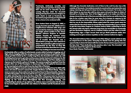 Although the Arsonist dedicates a lot of time to his craft he also has a life outside of his music. Currently he works in construction and extraction and enjoys dancing and all sports when he has a free moment. He is also a full time father to one boy who will be nine years old and he likes to think of himself as a family man. One of his biggest goals is to make sure that he always shows his son all of the love and affection that he can while teaching him to be a better man than he ever was. He is known to express in his rhymes how his son is his motivation to strive for greatness and to believe that he can do the impossible. When asked what his career goals were he states that for the short-term he would like the opportunity to go to college to get his Associates Degree in Criminal Justice while continuing to flood the streets with mix tapes; whereas long-term, he would like to eventually get two Bachelors Degrees, one in Criminal Justice and the other in Audio Engineering; sign a major record deal and go Multi platinum while also making sure he gets reverse royalties on his contract before he sign’s.