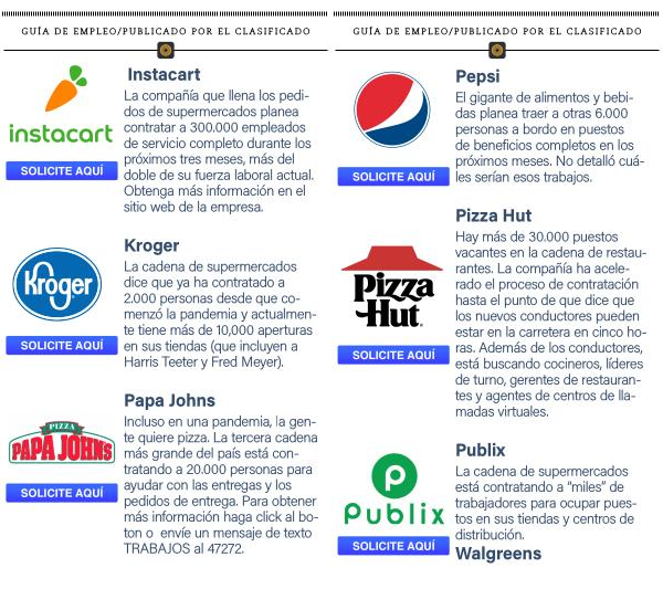Incluso en una pandemia , la gente quiere pizza . La tercera cadena más grande del país está contratando a 20.000 personas para ayudar con las entregas y los pedidos de entrega . Para obtener más información haga click al boton o envíe un mensaje de texto TRABAJOS al 47272 .