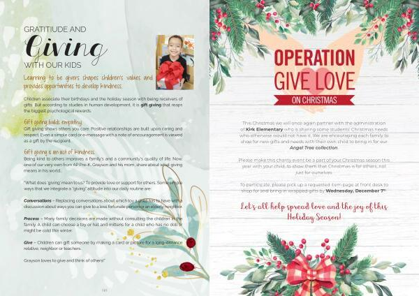 This Christmas we will once again partner with the administration of Kirk Elementary who is sharing some students ’ Christmas needs who otherwise would not have it . We are encouraging each family to shop for new gifts and needs with their own child to bring in for our Angel Tree collection .