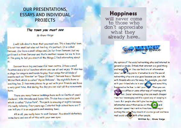 OUR PRESENTATIONS, ESSAYS AND INDIVIDUAL PROJECTS