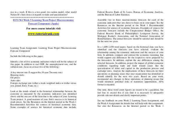 ECO 561 Week 5 Learning Team Project Macroeconomic