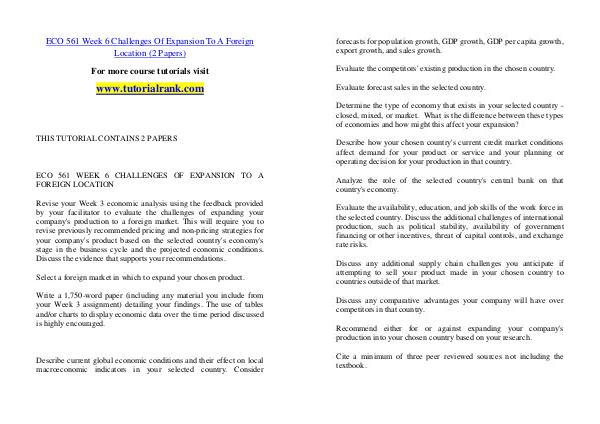 ECO 561 Week 6 Challenges Of Expansion To A Foreign