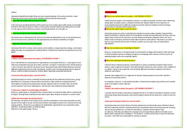 1.What’s your opinion about the project ,,ECO FRIENDLY ACTIONS” ?
