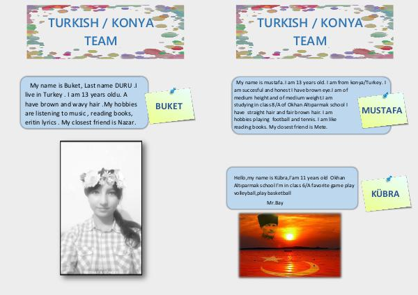 My name is mustafa. I am 13 years old. I am from konya/Turkey. I
