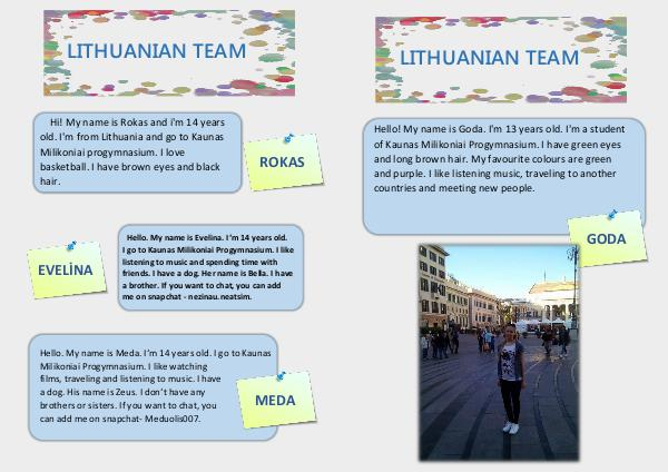 Hello. My name is Meda. I‘m 14 years old. I go to Kaunas