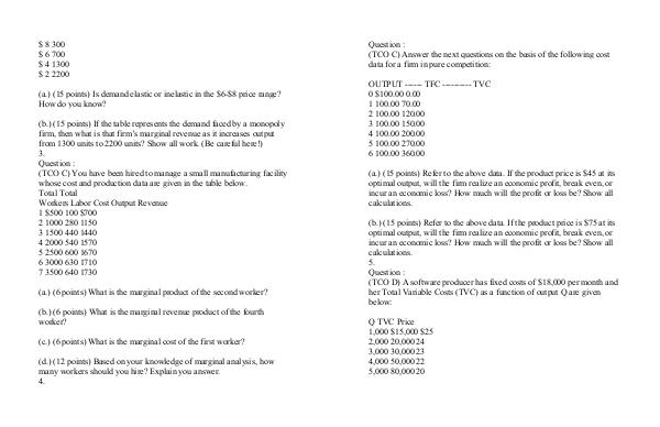 (b.) (15 points) If the table represents the demand faced by a monopoly