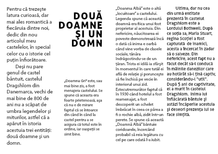 Pentru că trezeşte latura curioasă, dar mai ales romantică a fiecăruia dintre noi, dedic din nou articolul meu castelelor, în special celor cu o istorie cel puţin înfiorătoare.