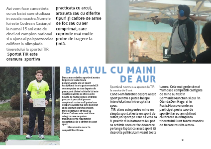 Azi vom face cunostinta cu un baiat care studiaza in scoala noastra.Numele lui este Codrean Casian,el la numai 15 ani este de cinci ori campion national si a ajuns al paisprezecelea calificat la olimpiada tineretului la sportul TIR.