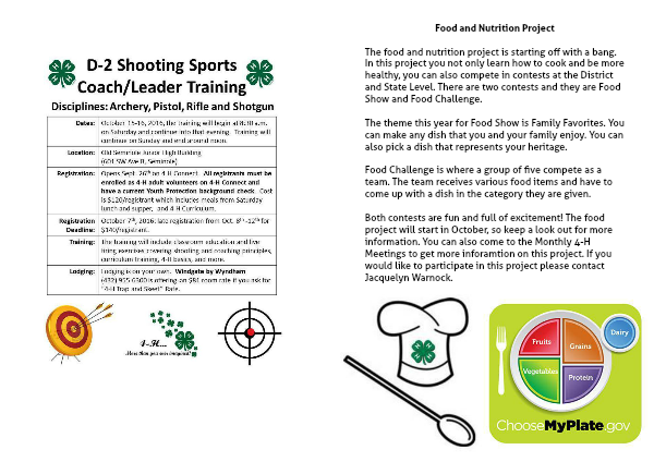 Both contests are fun and full of excitement! The food project will start in October, so keep a look out for more information. You can also come to the Monthly 4-H Meetings to get more inforamtion on this project. If you would like to participate in this project please contact Jacquelyn Warnock.