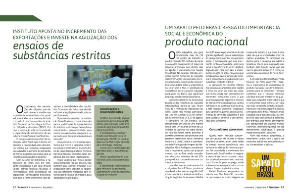 crescimento das exportações de calçados , que deverá ocorrer à medida que a pandemia se estabilizar e for possível reestabeler as economias de todo o mundo é uma das apostas do Instituto Brasileiro de Tecnologia do Couro , Calçado e Artefatos ( IBTeC ). Por isso , a instituição está incrementando a capacidade de atendimento do seu Laboratório de Substâncias Restritas .