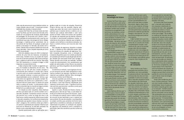 Quanto a custos , Ricardo de Oliveira chamou a atenção para o fato de que “ hoje , o custo deste material já é um décimo do que era há três anos ”. Quanto à utilização do material , hoje a indústria de bens de consumo já está habilitada a usar o material em seus produtos . No caso de calçados , o uso de grafeno no solado contribui para aumentar de forma muito significativa a resistência à abrasão , por exemplo . A implantação do grafeno na produção de calçados de segurança traz benefícios como a resistência à perfuração , pela alta resistência que ele confere ao material .