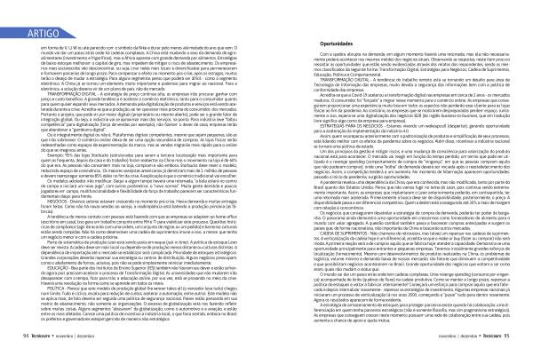 Com a quebra abrupta na demanda , em algum momento haverá uma retomada , mas ela não necessariamente poderá acontecer nos mesmos moldes dos negócios atuais . Observando as respostas , neste item procuro ressaltar as oportunidades que estão sendo evidenciadas através dos relatos dos respondentes , sendo os mesmos classificados da seguinte forma : Transformação Digital , Estratégias para Negócios , Cadeia de Suprimentos , Educação , Política e Comportamental .