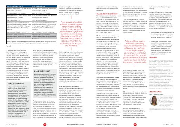 Additionally , insights on the local business community have been identified and are currently being used to improve decision-making , support local economic development initiatives , and inform policy interventions . From the initiative , the City has been able to measure the dispersion of economic activity and identify regional economic clusters . Incremental changes in the employment and turnover composition of businesses that are registered on the workforce-sharing initiative have also been monitored . Finally , based on the available data , the City has been able to respond more appropriately to the economic needs of the business community , including identifying skill gaps and export opportunities .