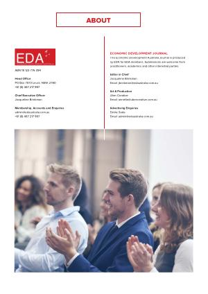 ECONOMIC DEVELOPMENT JOURNAL The Economic Development Australia Journal is produced by EDA for EDA members . Submissions are welcome from practitioners , academics and other interested parties .