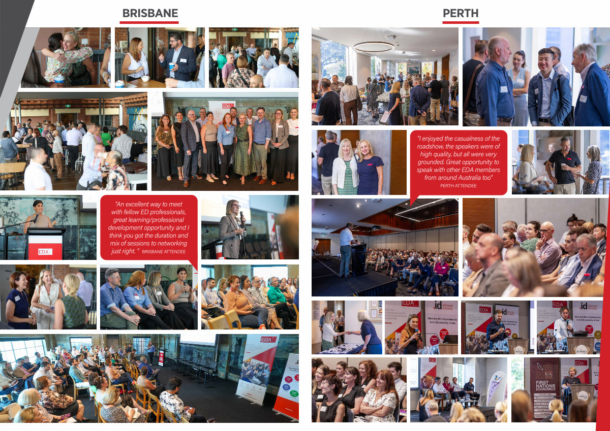 " An excellent way to meet with fellow ED professionals, great learning / professional development opportunity and I think you got the duration and mix of sessions to networking just right. " BRISBANE ATTENDEE