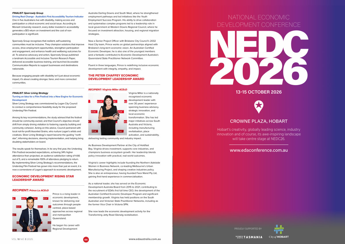 RECIPIENT: Prince Lo ACEcD Prince is a rising leader in economic development, known for delivering real outcomes through peoplecentred, place-based approaches across regional and metropolitan Queensland.