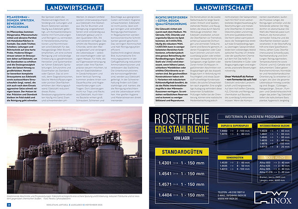standhalten, laufen die Prozesse ruhiger, die Reinigungen schneller und die Stillstände seltener. Der Weg dorthin ist überschaubar. Die Wahl des Materials passt zum Medium, die Konstruktion vermeidet Toträume und die Oberflächen bleiben sauber verarbeitet. In der Beschaffung hilft eine klare Spezifikation. Hierzu zählen Güte, Oberflächenzustand, Schweißzusatz, Nachbehandlung und Dichtungen. Reinigungsmedien, Temperaturbereiche sowie Chlorid- und H 2 S-Gehalte sind dokumentiert. Dabei geben Branchenrichtlinien, Normblätter und Herstellerhandbücher Orientierung. So entstehen Lösungen, die über die gesamte Lebensdauer hinweg zuverlässig sind. Biogas-, Güllelager-, Nassgestänge-, Streuer-, Pumpen- und Gewächshaustechnik zeigen das jeden Tag. Edelstahl liefert die kalkulierbare Basis: planbar, hygienisch, langlebig. |