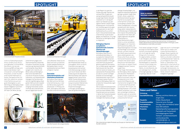 nicht nur Edelstahlprodukte formt , sondern auch die Zukunft gestaltet “, so Nina Härtel . Die Mission , die seit der Gründung 1889 verfolgt wird , betont das Streben nach innovativen und nachhaltigen Produkten , um den Kunden einen echten Mehrwert zu bieten . Dies geht einher mit dem Ziel , sowohl ein verlässlicher Partner als auch ein guter Arbeitgeber zu sein . Der Erfolg von Böllinghaus Steel basiert maßgeblich auf einem qualifizierten und motivierten Team . Die Werte , die das |