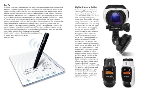 The company you associate more with navigation technology is now launching into the action camera market the VIRB. The Garmin device takes advantage of the growing action sports environment creating a 1080p video camera which will shoot video for up to three hours including getting dunked, shocked, and jiggled around. You know, all that jiggling, dunking and shocking stuff you would normally get up to, outdoors. Its rugged construct combines a camcorder and telescope design and by using Garmin’s proprietary wireless technology ANT+ your durable action cam will sync with compatible Garmin devices including having control over it from select GPS products. A more pricier VIRB Elite includes Wi-Fi and lets you connect with your smartphone as well as giving you speed, elevation, location and heart rate, all of which can be displayed on the video playback. Digital stabilisation is essential and effective plus the thoughtful gadget includes a Ski Mode that pauses when you climb on board the chairlift. The ‘activity’ market is seeing rapid growth and with it will come more competition from device worthy companies like Garmin who have made an impressive mark on the action cam playing field.