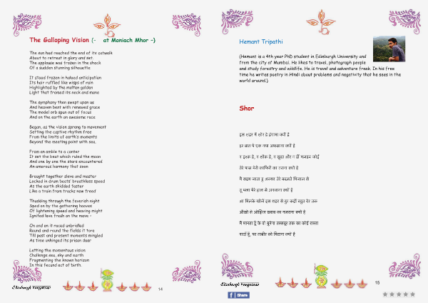 ( Hemant is a 4th year PhD student in Edinburgh University and from the city of Mumbai. He likes to travel, photograph people and study forestry and wildlife. He is travel and adventure freak. In his free time he writes poetry in Hindi about problems and negativity that he sees in the world around.)