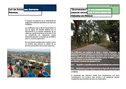 Les notificamos que acabamos de añadir a nuestra compilación de Legislación mexicana aplicable a las actividades turísticas, el Capítulo 10 “Ecoturismo”, en el cual estaremos incluyendo todos los lineamientos legales aplicables a esta importante rama del turismo en México, y para la cual contamos con un potencial inigualable.